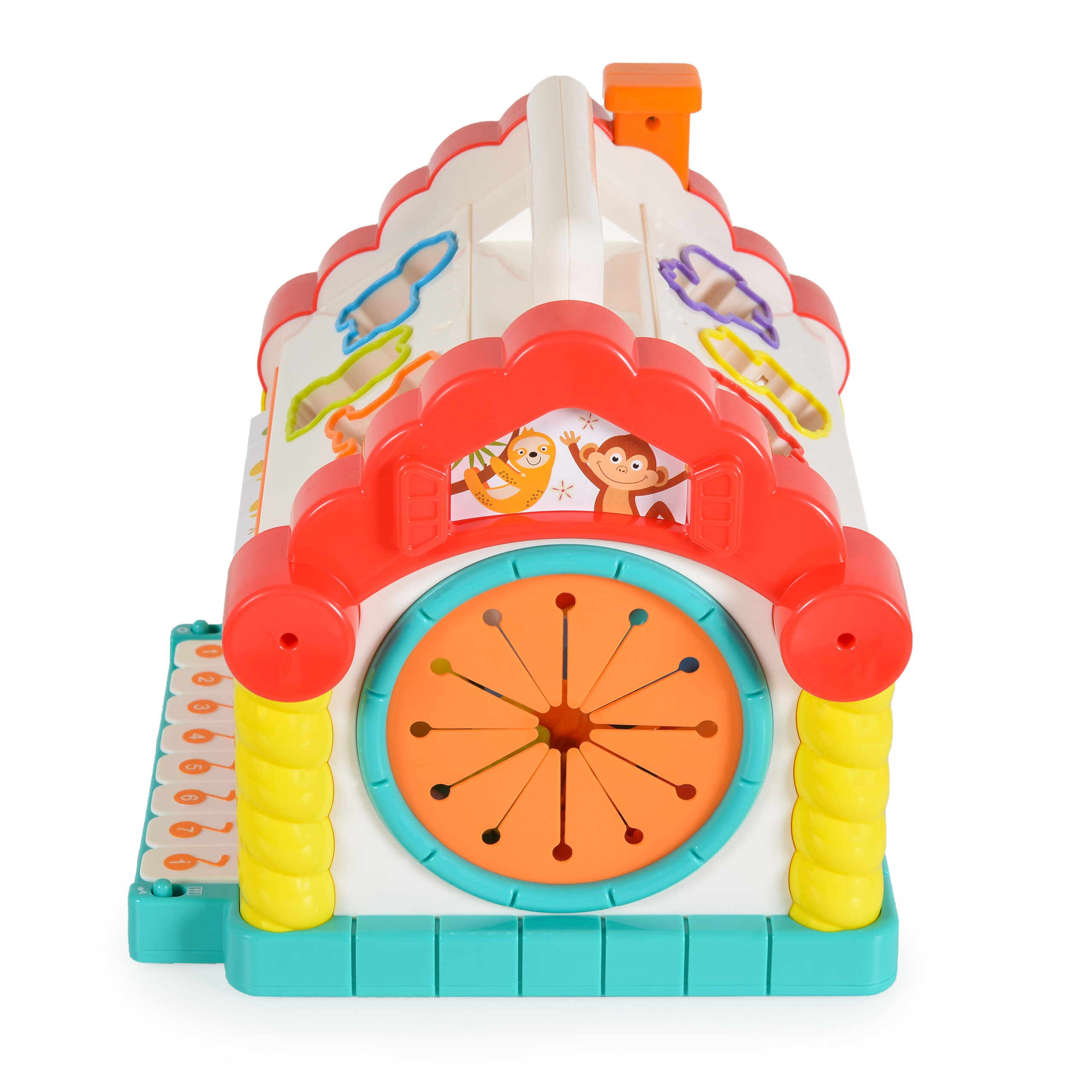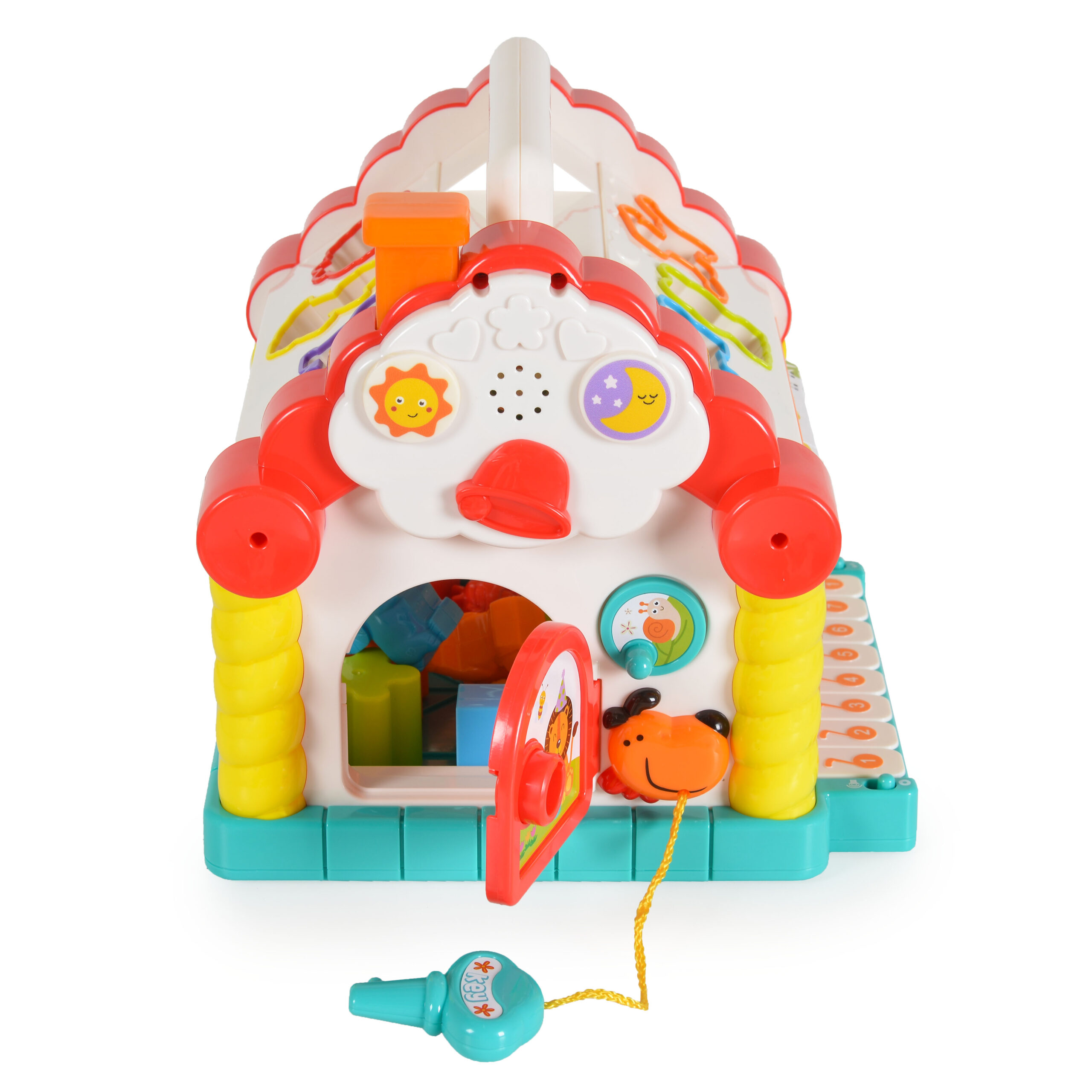 Този сортер къща стимулира въображението, координацията и сетивното възприятие на детето, превръщайки всяка игра в интересно приключение.