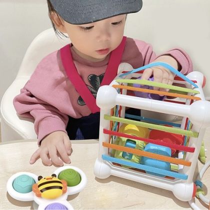 ✅ Гъвкави силиконови стени – Вмъкването на блокчетата в куба е още по-забавно благодарение на меките гумени ленти, които създават леко съпротивление. Това стимулира любопитството на детето и развива ръчната му сръчност.