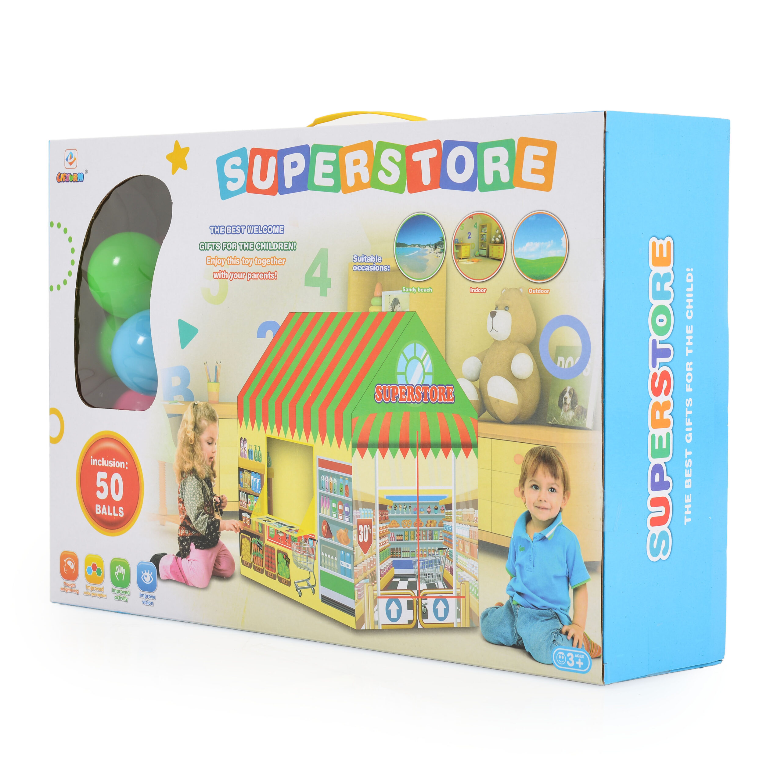 Тента „Супермаркет“ осигурява часове забавление и подпомага развитието на социалните умения на детето, докато играе и се забавлява.