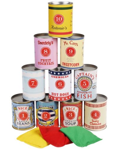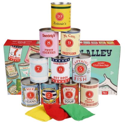 Подарете часове забавление на детето си с невероятната традиционна игра с тенекиени кутии за събаряне. Предложението на Rex London е цветно, забавно и с интересни илюстрации, будещи силно детското внимание. Играйте на закрито или открито, наредете кутиите и хвърляйте торбичките, включени в комплекта. Целта е да съборите възможно най-много от тенекиените кутии.