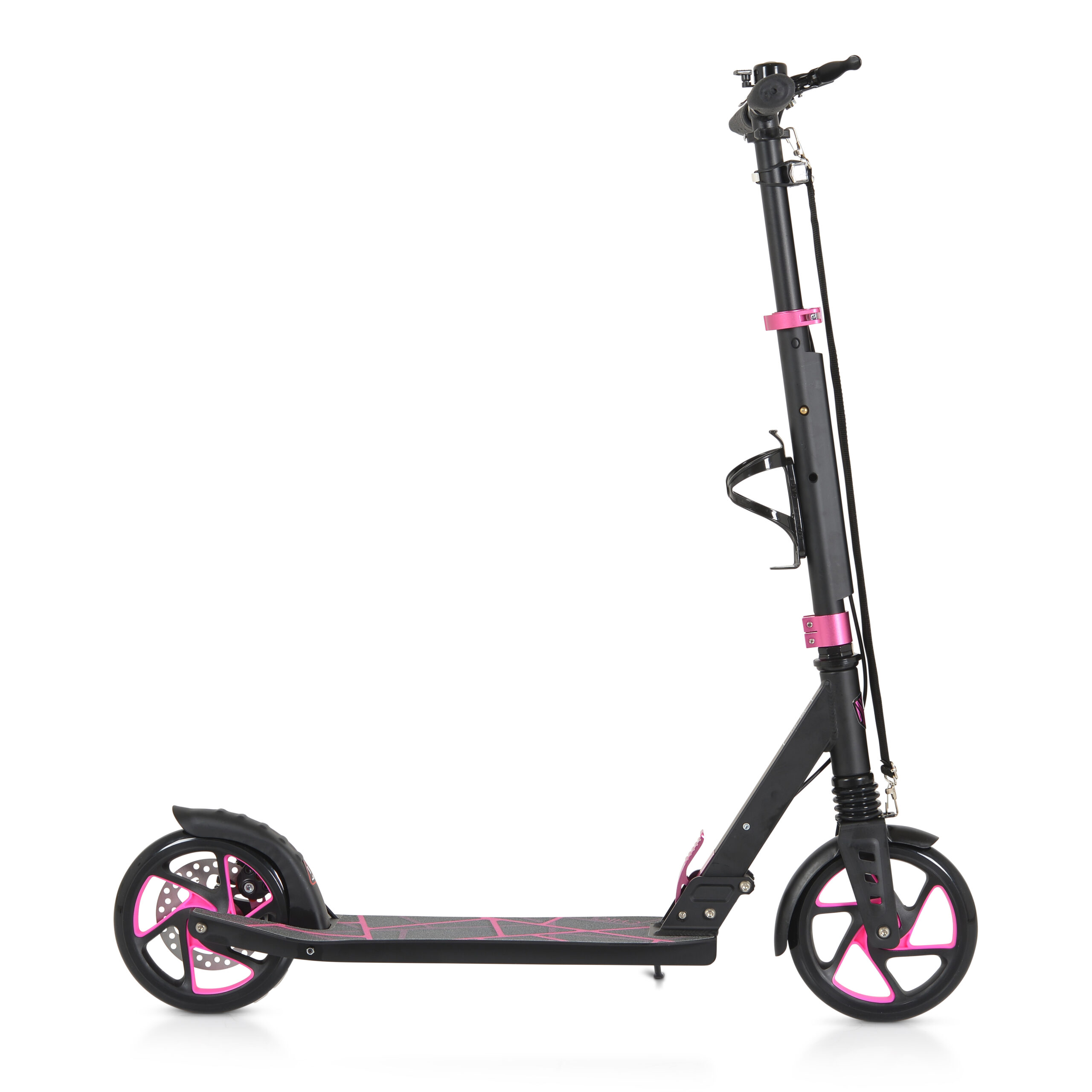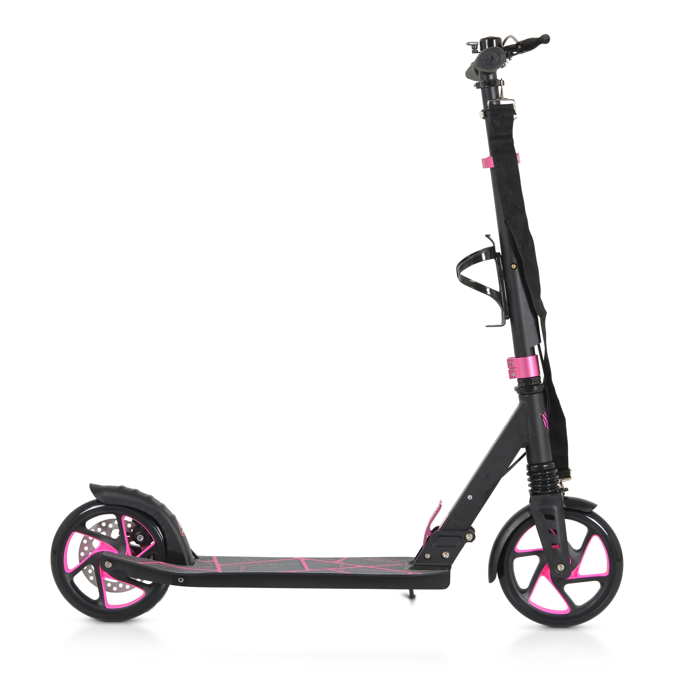 Тротинетката е оборудвана с колан за пренасяне, звънец, стойка за шише за вода и предна LED светлина.