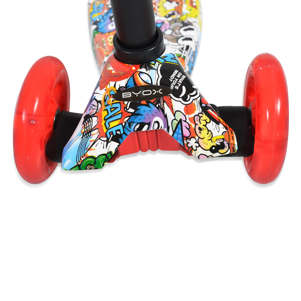 Алуминиевата тротинетка Rapture от Byox комбинира стабилност, стил и забавление, благодарение на своята здрава конструкция и атрактивен водно-трансферен принт върху PP платформата. Тя е подходяща за ежедневна употреба и осигурява безопасно каране за деца.