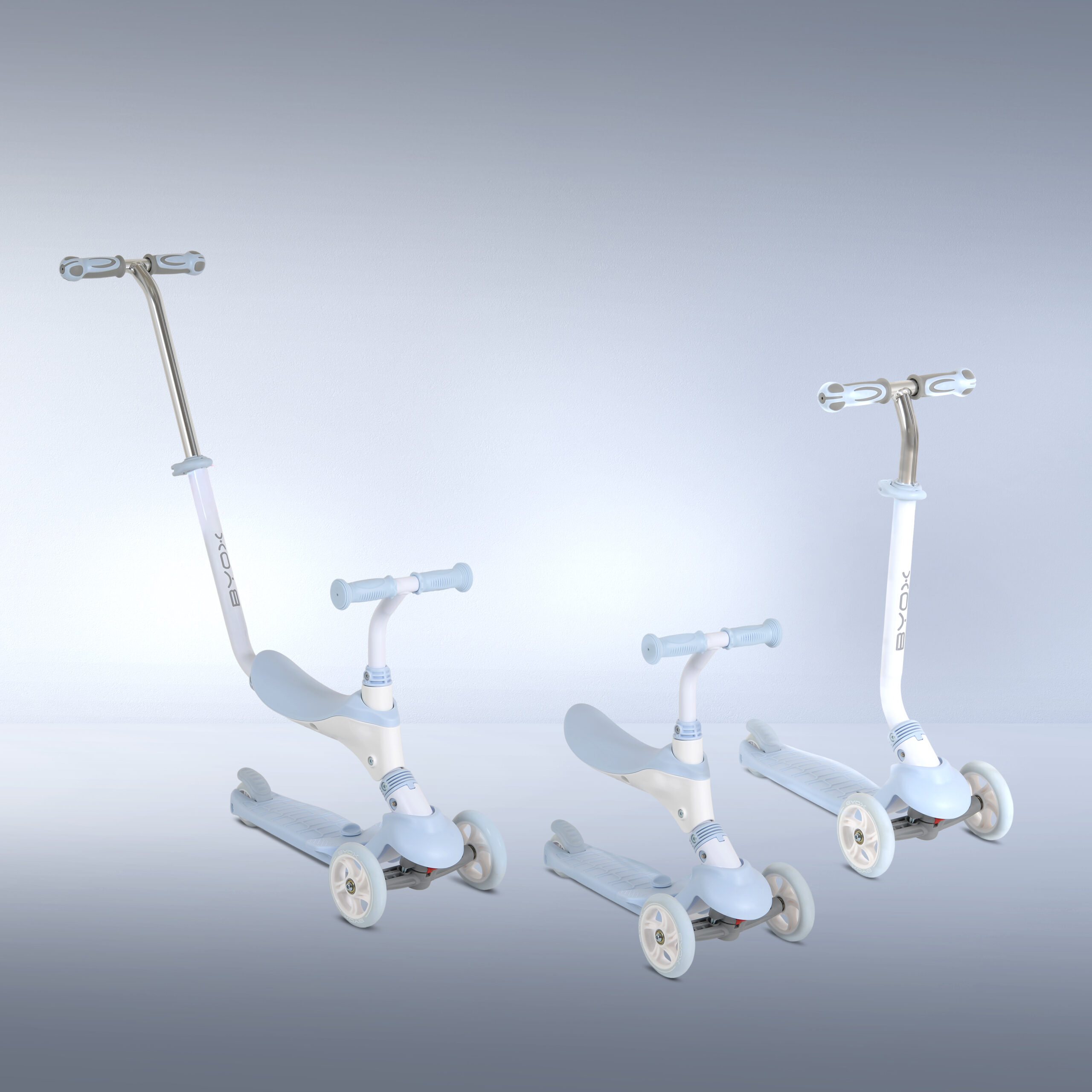 Детската тротинетка Tristar 3в1 от Byox е практично и функционално решение, което расте заедно с детето. Моделът комбинира три функции – тротинетка със седалка, тротинетка с родителски контрол и класическа тротинетка за по-големи деца. Подходяща е както за първи разходки, така и за самостоятелно каране.