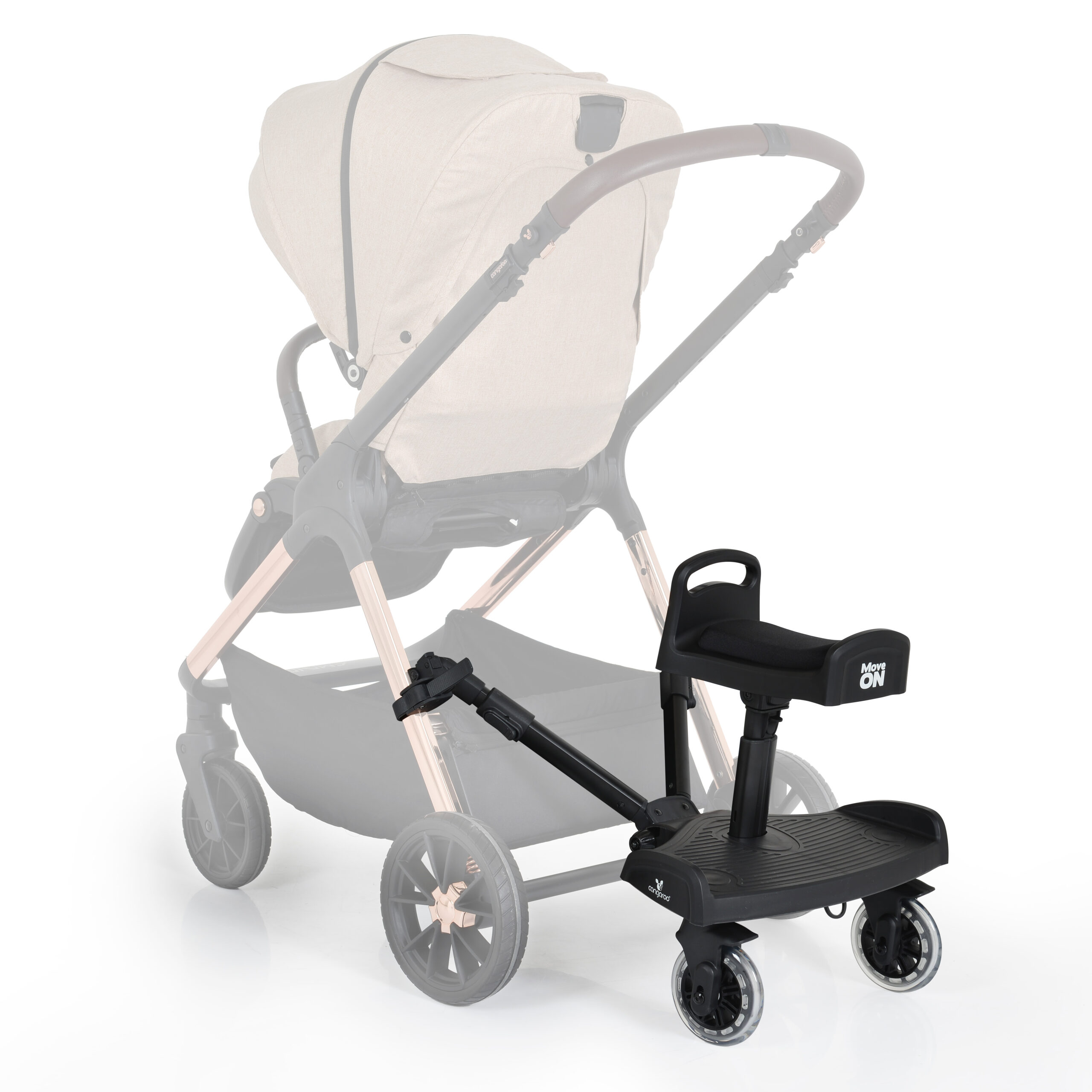 Универсална степенка Move on със седалка за второ дете, която може да се приспособи към почти всички видове детски колички.