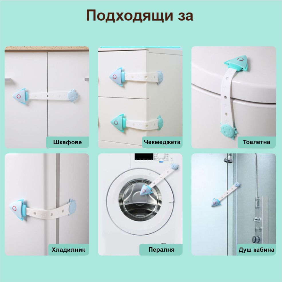 Мултифункционално устройство за заключване на всякакъв тип мебели- шкафове, чекмеджета, хладилници, тоалетни казанчета.