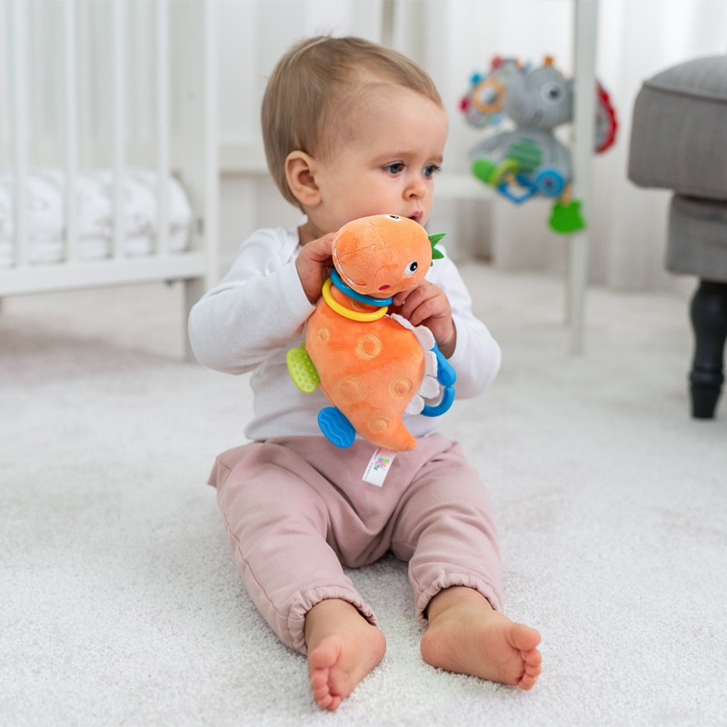 Корпусът на Dino крие звънче, благодарение на което играчката весело звъни при разклащане.