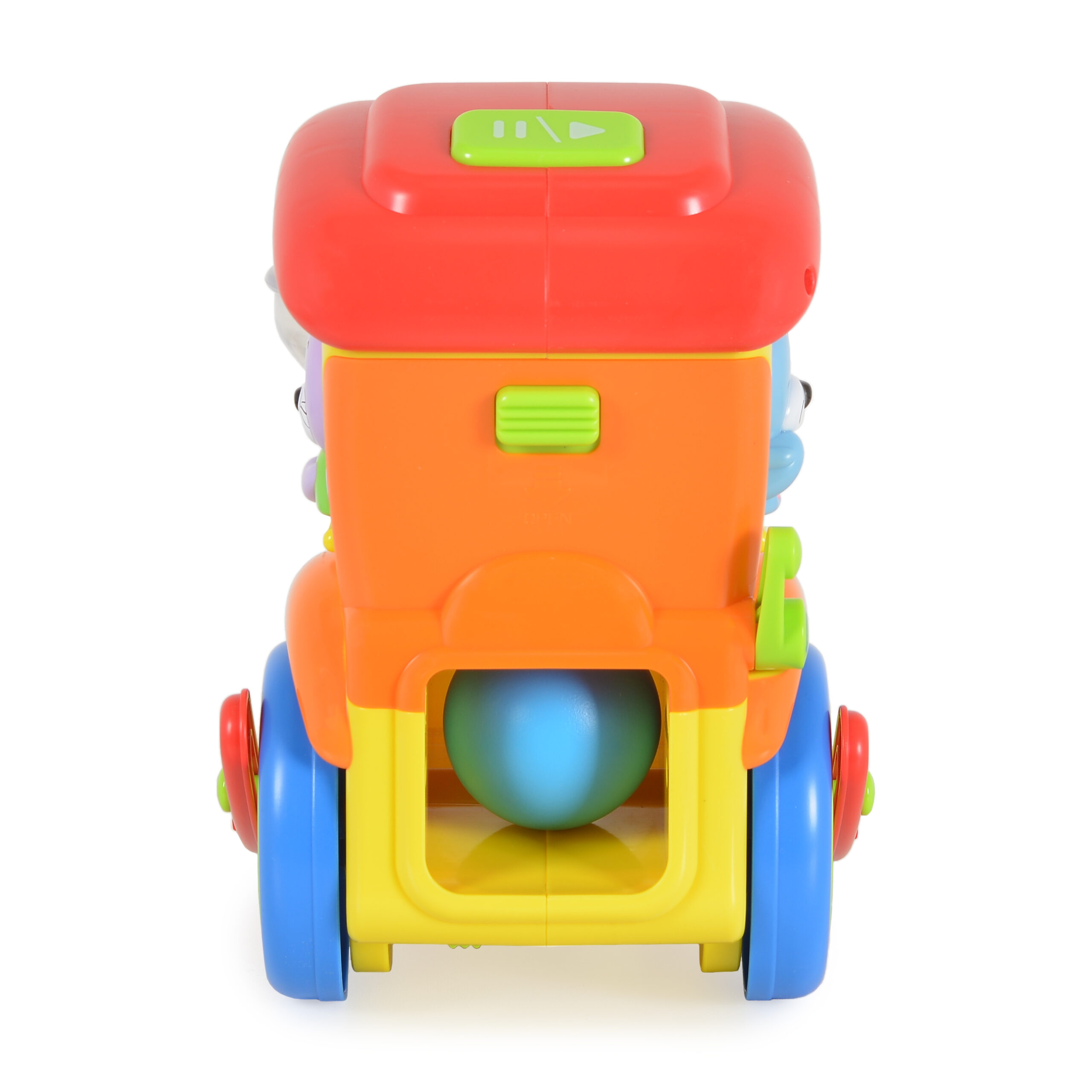 Забавна и образователна играчка за най-малките! Това цветно влакче включва три топчета, които могат да бъдат поставяни в различни отворени пространства по вагоните, стимулирайки координацията, фината моторика и разпознаването на форми и цветове. Изработено от безопасна пластмаса, подходящо за деца над 18 месеца.