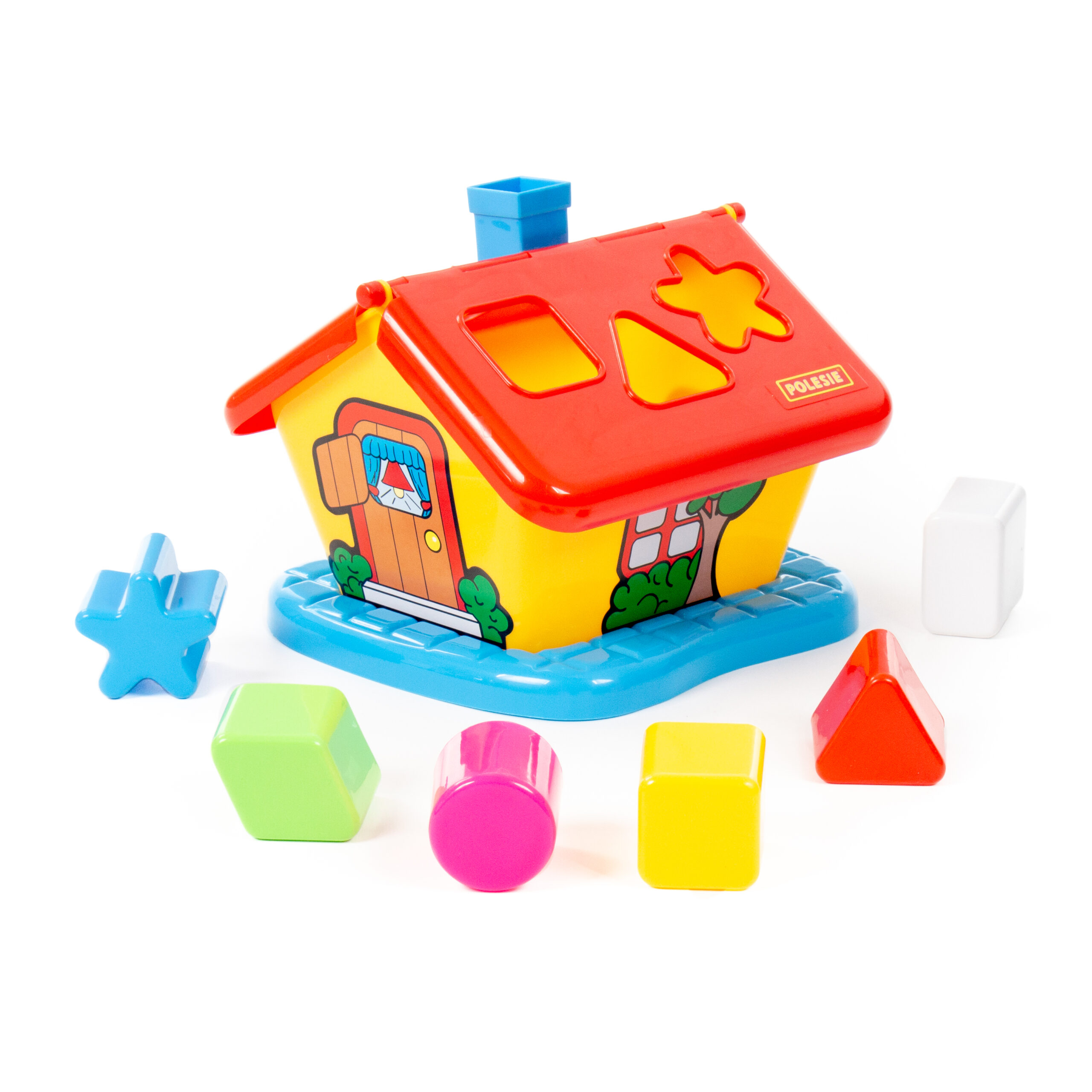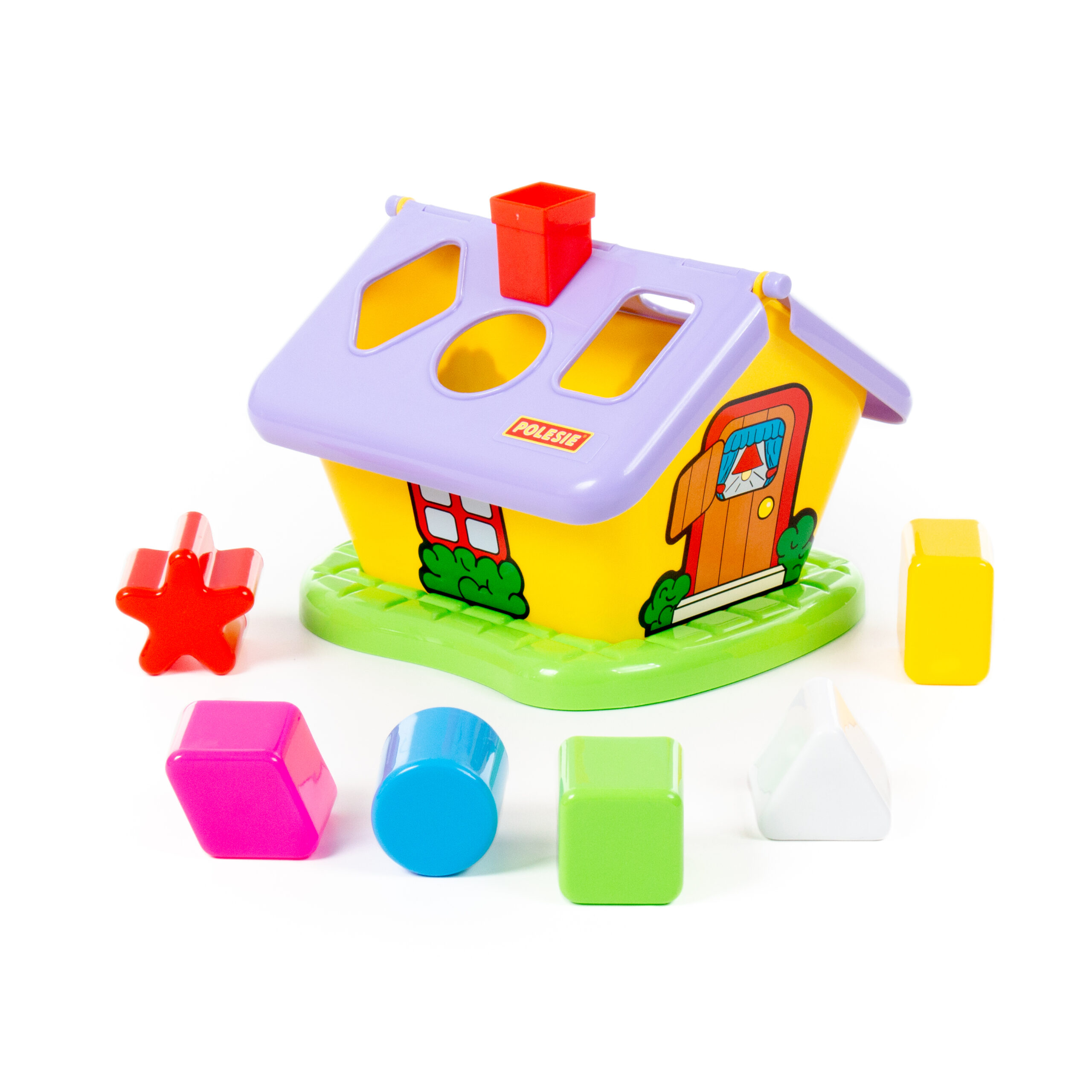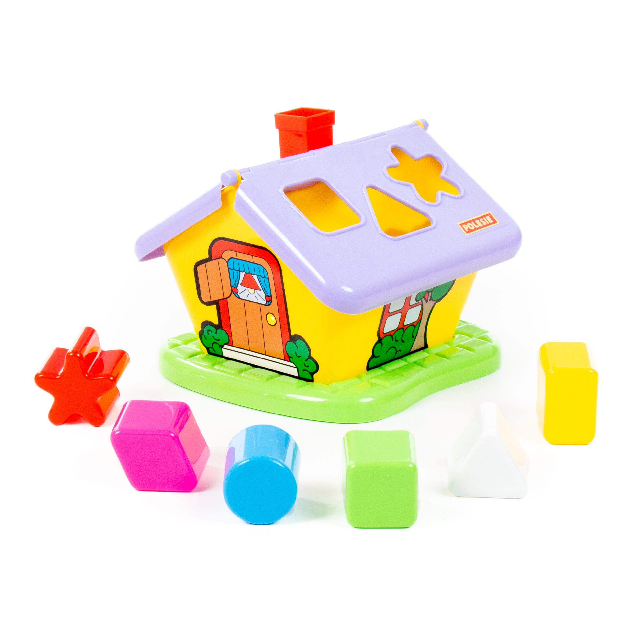 Тази многоцветна градинска къща сортер се предлага с 6 различни многоцветни форми, които влизат в отвори в покрива на къщата.