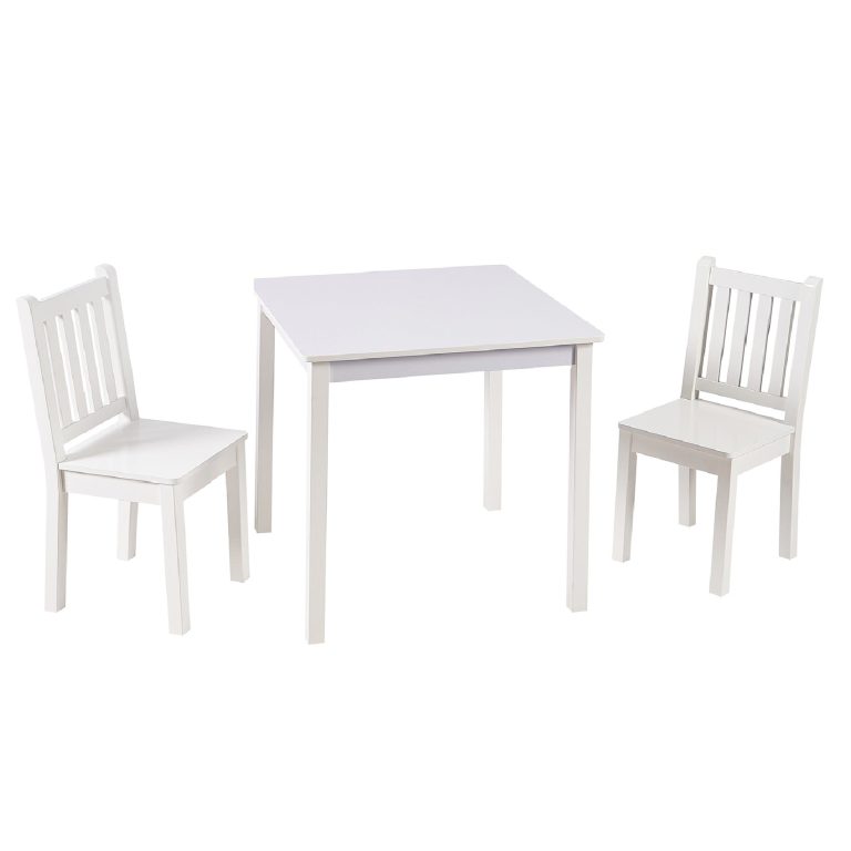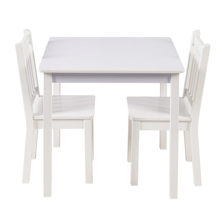 Детска Дървена Маса с 2 Столчета BUNNY, Комплект за Учене, Рисуване, Игра, Хранене, за Детска Стая, Бял